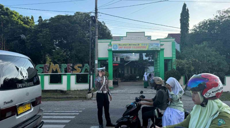 Aceh Barat Daya – Personel Sat lantas Polres Aceh Barat Daya melaksanakan giat Strong Point pagi di Sp. Bank Aceh, Sp. Puskesmas dan Sp. Bukit Hijau, dan SMPN 1 Blangpidie Kabupaten Aceh Barat Daya. Kamis (24/07/2025).